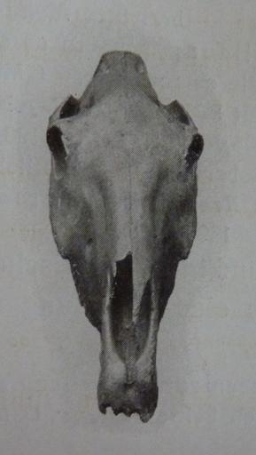 Keywords: Hans I. Schädel von vorn.jpg Schädel des ersten klugen Hans Karl Krall Denkende Tiere S 277 1912 oder früher Karl Krall s u PD-old Clever Hans Horse skulls Black and white photographs of horses