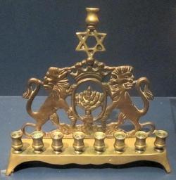 | Keywords: Hanukkah menorah, Russia, 1890, brass, National Museum of American Jewish History.JPG en Hanukkah menorah Russia 1890 brass National Museum of American Jewish History own Wmpearl photo 2011 Cc-zero National Museum of American Jewish History Hanukiah |