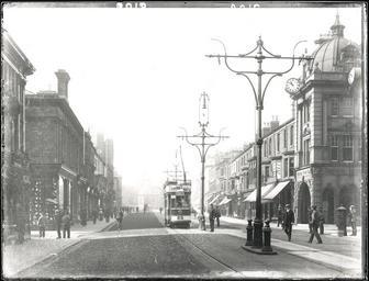 | Keywords: hartlepool west hartlepool westhartlepool church street churchstreet historic victorian tram electric tram electrictram church black and white blackandwhite b&w bw buildings people old west hartlepool historic street views westhartlepoolhistoricstreetviews road outdoor blackandwhite architecture black and white Photograph of Church Street, West Hartlepool, looking up the street towards Christ Church showing the shops and buildings on either side of the street. The photo also shows an electric tram on the tramline which was opened in 1885. This photograph dates approximately between 1885 to 1905 Photograph was taken from a glass plate negative. Photograph of Church Street, West Hartlepool, looking up the street towards Christ Church showing the shops and buildings on either side of the street. The photo also shows an electric tram on the tramline which was opened in 1885. This photograph dates approximately between 1885 to 1905 Photograph was taken from a glass plate negative. |