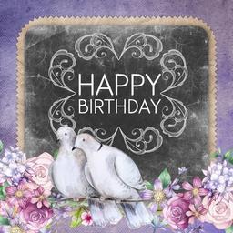 Keywords: happy birthday greeting card doves calligraphy blackboard flowers cute pink feminine floral branch happy birthday card happy gift celebration day birthday party present romantic square celebrate event message