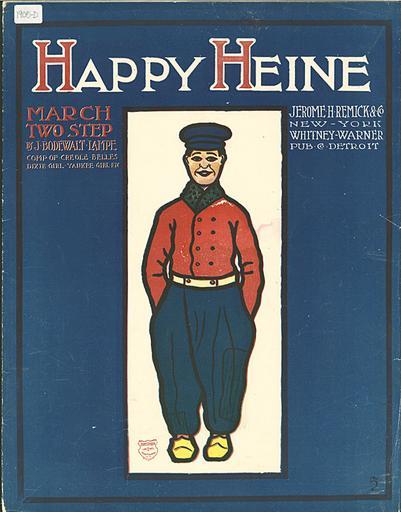 Keywords: HappyHeinieCoverLampe.jpg Happy Heinie sheet music cover 1905 Sheet music published by Jerome H Remick Co New York Via http //ucblibraries colorado edu/cgi-bin/sheetmusic pl RagHappy Rag 1 1905 J Bodewalt Lampe d 1929 PD-Old Sheet music covers of New York City Music in 1905 National costumes of the Netherlands Red white and blue in the United States |