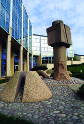 Keywords: Harada-saint-brieuc-1989.jpg en Mineral garden Public commission for the Hotel des Impots of Saint Brieuc Brittany region Realizes a landscape sculpture Mineral garden on the Earth Weaving concept 47 tons of pink granite totems of 5 meters 80 m2 pavement in pink granite pyramid steps ring tied with the Earth Organized by the Ministry of Economy and Finance with architect Caron in Nantes Tetsuo Harada carves the environmental sculpture in granit called mineral Garden on the concept Earth Weaving Monumental sculpture of 47 tons of pink granite Perros Guirec in Britany Totem is in two pieces has 5 meters high The scene is covered of pebbles and paving for 80 m2 the ring the pyramid the cone the stairs are also in granite carved by tetsuo Harada himself from several blocs The sculpture shaped totem is a signal to be seen from afar On the ground many small sculptures of geometric shapes are possibilities of games for children for people to rest Adjustments plants marry very well with this matter what noble pink granite The ten massive granite blocks were carve with the technique or direct carving using chisels and hammer diamond tools directly in the career Hignard of Lanhélin in Britany 35 In total more than 47 tons of granite have been carved and transported at Saint Brieuc Around two years are necessary to carve those hard fr SCULPTURE ENVIRONNEMENT - JARDIN MINÉRAL - Hôtel des Impôts de Saint Brieuc Côtes d ™Armor Bretagne France Hauteur 500 cm surface 90 m2 Granit rose de la Clarté galets du Cap Fréhel dallage et plantes Commande publique 1 organisée par le ministère des Finances et avec l ™architecte Caron à Nantes Tetsuo Harada sculptre dans du granit massif «Le jardin minéral» sur le concept du Tricot de la Terre Sculpture monumentale de 47 tonnes en granit rose de Bretagne Totem de 5 mètres de haut il est composé de deux parties posées l'une sur l'autre La scène est faite de galets du Cap Fréhel et de dallage en granit épais representant 80 m2 L'anneau la pyramide le cône l'escalier ont été sculpté par Tetsuo Harada aussi; ils sont disposés sur le sol de manière à rendre conviviale l'ensemble Ces petites sculptures de formes géométriques sont des possibilités de jeux pour les enfants ou pour se reposer La sculpture placée devant en forme de totem se veut comme un signal pour être vue de loin Des aménagements de plantes se marient très bien avec cette matière noble qu ™est le granit rose Les dix blocs de granit massif ont été taillés dans la carrière Hignard de Lanhélin C ™est un travail de taille directe du marteau et au burin Au total plus de 47 tonnes de granit ont été travaillées transportés sur le site puis installés par Tetsuo Harada Le travail va du dessin à la maquette à la réalisation en carrière pendant de nombreux mois de travail de sculpture puis les blocs sculptés sont transportés assemblés Enfin ce sont les finitions de maçonnerie et d'aménagement de plantes Concours 1 du Ministère de l ™Economie et des Finances en relation avec l ™architecte Caron de Nantes own Tetsuoharada 1989 Culture of Saint-Brieuc Granite sculptures in France Tetsuo Harada Sculptures in Côtes-d'Armor 1989 sculptures 1989 works in Bretagne 20th-century sculptures in Bretagne