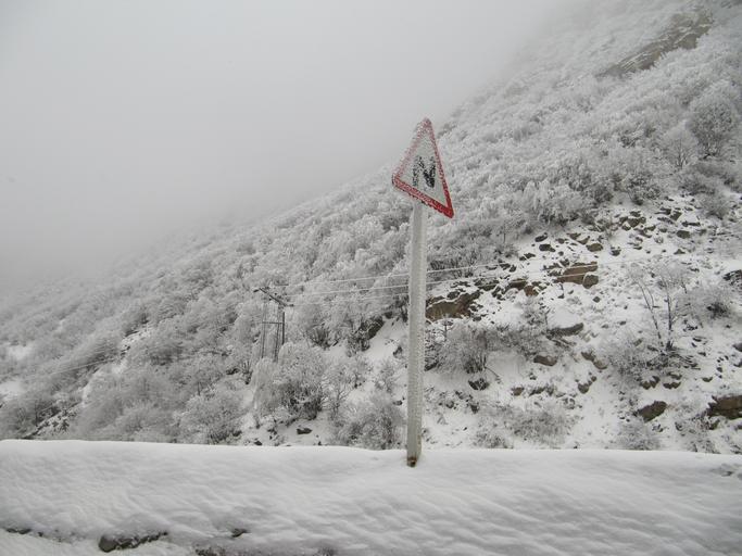Keywords: HARAZROAD.JPG en haraz road winter fa زمستان در جاده هراز own user دانقولا 2010 Cc-zero Haraz Road Road signs in Iran