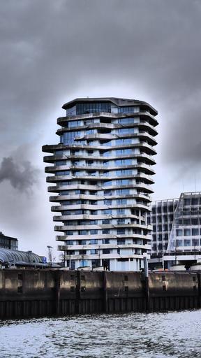 Keywords: harbour city hamburg hanseatic city marco-polo-tower architecture water