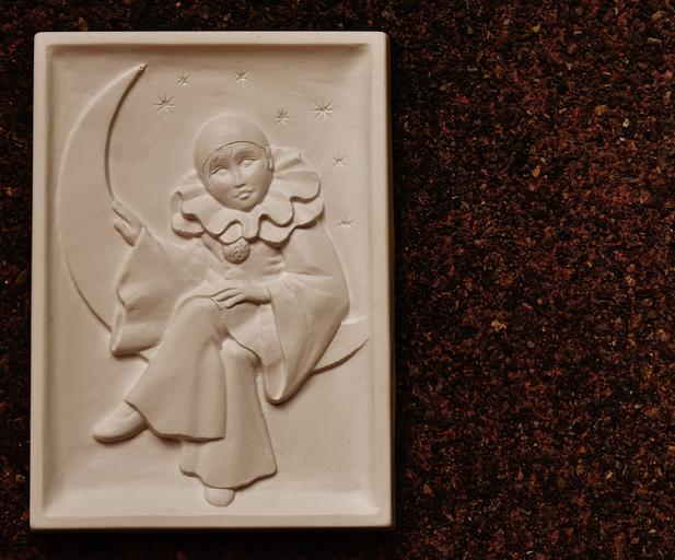 Keywords: harlequin image gypsum blank unpainted white cast hand labor self-made romantic romance moon