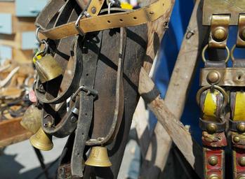 Keywords: harness for horses belts leather bell old antique flea market belt
