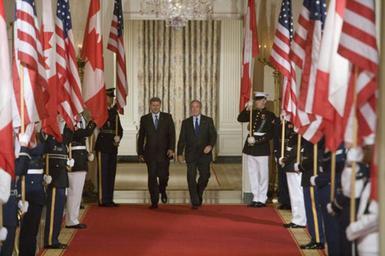 | Keywords: Harper and Bush.jpg President George W Bush and Prime Minister Stephen Harper of Canada hold a joint press conference in the East Room Thursday July 6 2006 I'm impressed by his leadership style said President Bush I appreciate the fact that he doesn't mince words he tells me what's on his mind and he does so in a real clear fashion White House photo by Kimberlee Hewitt PD-USGov George W Bush in 2006 20060706 Stephen Harper in 2006 Stephen Harper with national leaders | ||||
