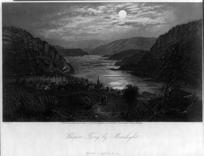 Keywords: Harpers ferry by moonlight.jpg Harpers Ferry by moonlight Harpers Ferry im Mondlicht Steel engraving by R Hinshelwood after painting by Granville Perkins LOC-image cph 3a51235 1874 Creator Robert Hinshelwood Illus in Picturesque America / William Cullen Bryant N Y c1872- v 1 SUBJECTS Rivers--West Virginia--Harpers Ferry--1870-1880 Harpers Ferry W Va --1870-1880 Landscape prints--1870-1880 Paintings--Reproductions--1870-1880 Engravings--1870-1880 RELATED NAMES Perkins Granville 1830-1895 artist MEDIUM 1 print engraving CALL NUMBER Item in LOT 11505 REPRODUCTION NUMBER LC-USZ62-51189 DLC b w film copy neg DIGITAL ID b w film copy neg cph 3a51235 PD-old Harpers Ferry West Virginia West Virginia in the 1870s de Image PAGENAME Picturesque America |