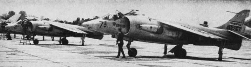 | Keywords: Harrier P1127 NAS Pax NAN9-66.jpg Hawker Siddley XV-6A Kestrel aircraft at the U S Naval Air Test Center at Patuxent River Maryland USA in 1966 Nine former Royal Air Force Kestrel FGA 1s RAF serials XS688/XS696 were used used for tri-service tests by the U S Air Force the U S Army and the U S Navy Only eight were deilivered as one crashed in Great Britain The XV-6A 64-18267 RAF XS693 shown in the center of the picture crashed near Boscombe Down on 21 September 1967 following an engine failure RAF Boscombe Down is an aircraft testing site located south of Amesbury Wiltshire Great Britian The XV-6A 64-18262 RAF XS688 is today preserved at the USAF Museum at Wright Patterson AFB Ohio USA U S Navy Naval Aviation News September 1966 http //www history navy mil/nan/backissues/1960s/1966/Sep66 pdf 1966 USN PD-USGov-Military-Navy Hawker Siddeley P 1127 1966 at Naval Air Station Patuxent River |