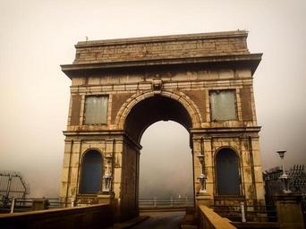 Keywords: hartbeespoort dam wall icon entrance tunnel south africa arch architecture building design exterior symbol architectural brick column construction decoration doorway history keystone old stone style misty outdoor travel structure