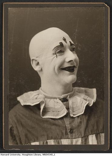 | Keywords: Harvard Theatre Collection - George H. Adams TCS 1.98.jpg en Cabinet card image of English pantomime clown George H Adams 1853-1935 in full make-up From a collection dated 1918 http //via lib harvard edu 80/via/deliver/deepLinkItem recordId olvwork604540 componentId FHCL Hough 5022895 TCS 1 98 Harvard Theatre Collection Harvard University This is a media file that Houghton Library believes to be in the public domain of the United States This applies to a work published before January 1 1923 or the unpublished work of an author who died more than 70 years ago Houghton Library and Harvard University claim no rights in this photographic reproduction of the work and the image is free to download and reproduce for any use commercial or non-commercial without any further permission required We request that where these media files are used the Houghton Library is credited as the source of the materials Please include this citation TCS 1 98 Harvard Theatre Collection Harvard University as its source In the event that any of the media files infringes your rights or the rights of any third parties or file is not properly identified or acknowledged we would like to hear from you so we may make any necessary alterations In this event please contact Houghton_Library harvard edu Institution Houghton Library 1918 or earlier http //via lib harvard edu 80/via/deliver/deepLinkItem recordId olvwork604540 componentId FHCL Hough 5022895 TCS 1 98 Harvard Theatre Collection Harvard University Photographer unidentified PD-old Pantomime musical comedy Clowns from the United Kingdom 1853 births 1935 deaths Harvard Theatre Collection |