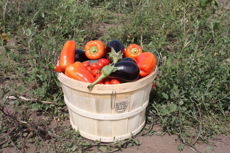 Keywords: harvest tomatoes eggplant nature plant elitexpo vegetable garden basket food garden dacha