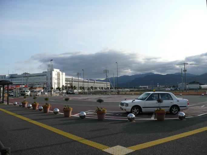 Keywords: Hashimoto sta rotari.JPG en 橋 駅の駅前ロータリー 自身で撮影 上 ジョー 2010-12-24 Cc-zero Hashimoto Station Fukuoka Traffic circles in Japan Tactile paving in Japan Flowerpots in Japan