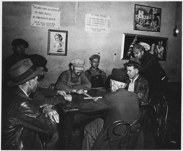 Keywords: Haskell County, Kansas. Sublette's Pool Hall. Recreation is limited in this region, though now that . . . - NARA - 522154.tif Scope and content Full caption reads as follows Haskell County Kansas Sublette's Pool Hall Recreation is limited in this region though now that most families have cars many of them drive to the larger towns outside the county to see movies In Sublette people meet either here or in the back part of one of the drugstores There is a domino game going in both almost every night The pool hall draws more people because it offers a choice of dominoes or pool; also most of the drug-store crowd are younger people General notes 522154 Local identifier 83-G-41965 Department of Agriculture Bureau of Agricultural Economics Division of Economic Information ca 1922 - ca 1953 NARA-Author Rusinow Irving Photographer 5307166 <br /> Still Picture Records Section Special Media Archives Services Division NWCS-S National Archives at College Park 8601 Adelphi Road College Park MD 20740-6001 04/1941 Record group Record Group 83 Records of the Bureau of Agricultural Economics 1876 - 1959 Record group ARC 412 Photographic Prints Documenting Programs and Activities of the Bureau of Agricultural Economics and Predecessor Agencies compiled ca 1922 - ca 1947 documenting the period ca 1911 - ca 1947 Series ARC 521048 File unit File unit ARC Variant control numbers NAIL Control Number NWDNS-83-G-41965 yes Other versions <gallery> File Haskell_County _Kansas _Sublette's_Pool_Hall _Recreation_is_limited_in_this_region _though_now_that_ _ _ _-_NARA_-_522154 tif tif File Haskell_County _Kansas _Sublette's_Pool_Hall _Recreation_is_limited_in_this_region _though_now_that_ _ _ _-_NARA_-_522154 jpg jpg </gallery> NARA-cooperation PD-USGov Irving Rusinow Haskell County Kansas NARA TIF images with categorized JPGs |