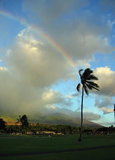 Keywords: hawaii hills hawaiian rainbow color palm palm tree palms green beautiful sky mountain landscape