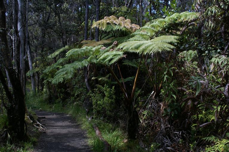 Keywords: hawaii iki lookout trail volcanoes national park trail vegetation fern plants nature path lush