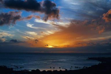 Keywords: hawaii island paradise sunset sun dusk evening sky clouds ocean skyscape oahu vacation travel