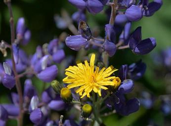 Keywords: hawkweed blossom bloom yellow lupins wild flower close