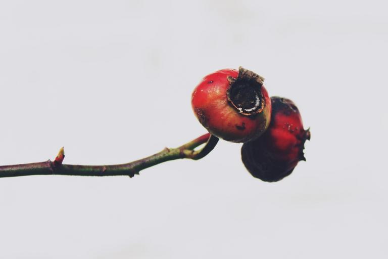 Keywords: hawthorn plant bush nature autumn close lonely scrub branch red berries fruits growth
