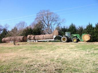 Keywords: Hay Bales.jpg A rancher transports round bales of hay down a rural road in Grayson County Texas USA Own 2008-02 Herbert Smith Grayson County Texas Round hay bales in Texas John Deere tractors John Deere front loaders Tractor-drawn trailers Agriculture in Texas Bale trailers |