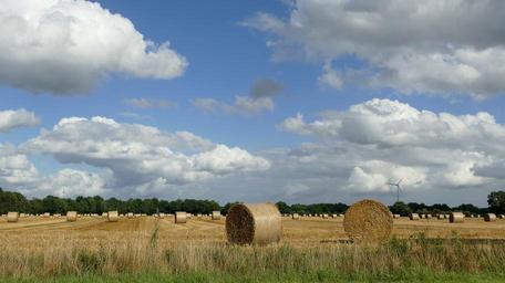 Keywords: hay harvest dried grass straw bales winter feed field agriculture landscape rural summer bale country life