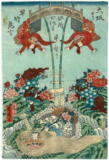 MAKE A MEME View Large Image Hayakawa Torakichi Hayagawari Utagawa Yoshiharu.jpg ja 大 下り 早竹虎吉(石橋の曲) 此   事 早替り 歌 芳晴 1857年2  en Japanese Acrobat performer Hayatake Torakichi by Utagawa Yoshiharu 1857 2013-08-05 14 ...