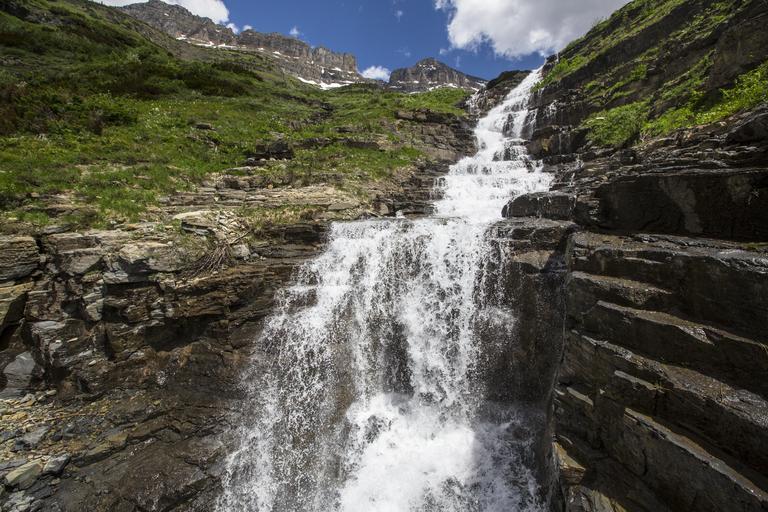 Keywords: glacier national park glaciernationalpark spring montana nps national parks nationalparks nature outdoors waterfall water outdoor landscape creek watercourse cliff rock rock formation mountainside NPS / Jacob W. Frank NPS / Jacob W. Frank