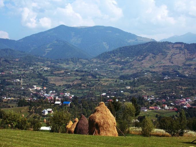 Keywords: haystacks landscape mountains cloud blue sky romania sun vegetation woe travel