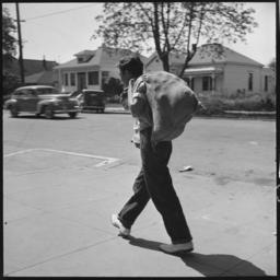 Keywords: Hayward, California. Youth on Relief. High School student calling for surplus commodities for his family on relief.... - NARA - 532125.tif Scope and content General notes 532125 Local identifier 119-CAL-62 Federal Security Agency National Youth Administration 07/01/1939 - 09/17/1942 NARA-Author Partridge Rondal 1917- Photographer 8464464 <br /> Still Picture Records Section Special Media Archives Services Division NWCS-S National Archives at College Park 8601 Adelphi Road College Park MD 20740-6001 1940-04-17 Record group Record Group 119 Records of the National Youth Administration 1934 - 1945 Record group ARC 448 Study of Youth Photographs compiled 1940 - 1940 Series ARC 532065 File unit File unit ARC Variant control numbers NAIL Control Number NWDNS-119-CAL-62 yes Other versions NARA-cooperation PD-USGov People of California Adolescent boys in the United States Great Depression in the United States National Youth Administration Burlap coffee sacks Hayward in the 1940s 1940 in California April 1940 in the United States NARA images of Alameda County California Rondal Partridge Black and white photographs of California Black and white photographs of men People of the United States in 1940 Food relief in the United States People of Hayward California Photographs taken on 1940-04-17 |