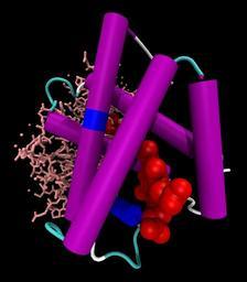 Keywords: HbA 1GZX.jpg en mixed type model of human hemoglobin dimer with A chain as cartoon in front and B chain behind as sticks; hemoglobin in the center as red balls Ref cite journal Paoli M Liddington R Tame J Wilkinson A Dodson G Crystal structure of T state haemoglobin with oxygen bound at all four haems J Mol Biol 256 4 775 “92 1996 March 8642597 10 1006/jmbi 1996 0124 Created with VMD own Ayacop 2010-10-02 Hemoglobin alpha-chain |