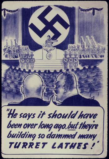 Keywords: "He Says it should have been over long ago but they're building so dammed many Turret Lathes" - NARA - 534383.jpg Scope and content General notes 534383 Local identifier 179-WP-534 Office for Emergency Management War Production Board 01/1942 - 11/03/1945 Still Picture Records Section Special Media Archives Services Division NWCS-S National Archives at College Park 8601 Adelphi Road College Park MD 20740-6001 other date ~ 1942 1943 Record group Record Group 179 Records of the War Production Board 1918 - 1947 Record group ARC 508 War Production Board compiled 1942 - 1943 Series ARC 533858 File unit File unit ARC Variant control numbers NAIL Control Number NWDNS-179-WP-534 Other versions <gallery> File He_Says_it_should_have_been_over_long_ago_but_they're_building_so_dammed_many_Turret_Lathes _-_NARA_-_534383 jpg jpg </gallery> NARA-cooperation PD-USGov World War II posters from the United States Hitler in Allied propaganda Turret lathes Caricatures of Adolf Hitler Drawings of Adolf Hitler |