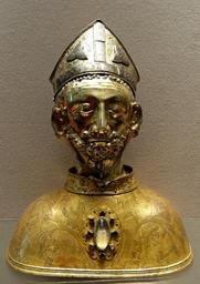 Keywords: Head reliquary Martin Louvre OA6459.jpg Head reliquary of St Martin Gilt silver and copper basse-taille enamel over silver restored in the 20th century made in Avignon late 14th century From the church of Soudeilles Corrèze France Chef-reliquaire de saint Martin Argent doré et cuivre émaux de basse-taille restaurés au XXe siècle réalisé à Avignon fin du XIVe siècle Provient de l'église de Soudeilles Corrèze France Museum Louvre Department of Decorative Arts Richelieu first floor room 3 object history credit line Gift of J P Morgan 1911 accession number OA 6459 Jastrow 2006 other versions Decorative arts in the Louvre - Room 3 Medieval sculptures Martin of Tours Head reliquaries in France Soudeilles Basse-taille enamel Reliquaries in Paris Louvre |