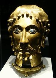 | Keywords: Head reliquary, replica of original from Stift Fischbeck by Otto Haegemann, Hannover, Germany, 1903, gilded bronze, partially silver coated - Ethnological Museum, Berlin - DSC02210.JPG en Exhibit in the Ethnological Museum Berlin Germany Photography was permitted in the museum without restriction 2014-11-11 11 23 37 own Daderot other versions cc-zero European ethnology in the Ethnological Museum Berlin Uploaded with UploadWizard | ||||