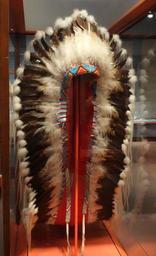 Keywords: Headdress owned by Sitting Eagle (John Hunter), Nakoda, early 1900s, front view, eagle feathers, rabbit fur, horsehair, hide, glass beads - Glenbow Museum - DSC00933.JPG en Exhibit in the Glenbow Museum 130 9th Ave S E Calgary Alberta Canada This work is old enough so that it is in the public domain Photography was permitted in the museum without restriction 2013-09-21 12 32 19 own Daderot cc-zero Uploaded with UploadWizard Headdresses in the Glenbow Museum Nakoda headdresses |