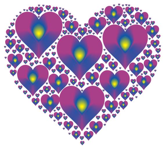 Keywords: heart hearts 3 love shape valentine romance passion fractal colorful prismatic chromatic rainbow shiny metallic art
