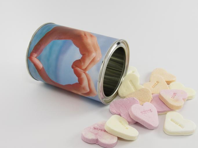 Keywords: heart hearts gift glance tin silver white metal paper container fill image cans background sheet store colorful pink yellow orange color colors