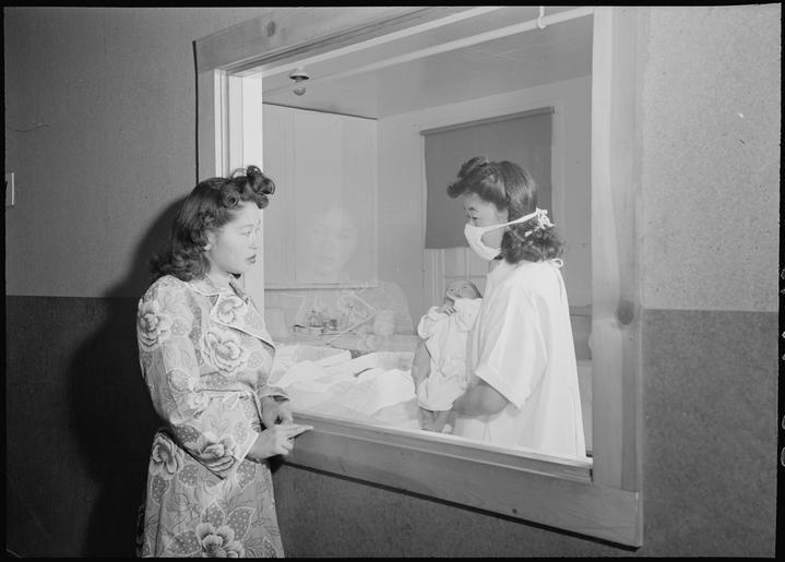| Keywords: Heart Mountain Relocation Center, Heart Mountain, Wyoming. Mrs. Mari Yoshida looks at her baby thro . . . - NARA - 539442.tif Scope and content The full caption for this photograph reads Heart Mountain Relocation Center Heart Mountain Wyoming Mrs Mari Yoshida looks at her baby through the plate glass window of the nursery as nurses aide Nobuko Hirashima returns it to its crib after feeding General notes 539442 Local identifier 210-G-G189 Department of the Interior War Relocation Authority 02/16/1944 - 06/30/1946 NARA-Author Iwasaki Hikaru 1923- Photographer 8464103 <br /> Still Picture Records Section Special Media Archives Services Division NWCS-S National Archives at College Park 8601 Adelphi Road College Park MD 20740-6001 1943-11-18 Record group Record Group 210 Records of the War Relocation Authority 1941 - 1989 Record group ARC 537 Central Photographic File of the War Relocation Authority compiled 1942 - 1945 Series ARC 536000 File unit File unit ARC Variant control numbers NAIL Control Number NWDNS-210-G-G189 yes Other versions <gallery> File Heart_Mountain_Relocation_Center _Heart_Mountain _Wyoming _Mrs _Mari_Yoshida_looks_at_her_baby_thro_ _ _ _-_NARA_-_539442 tif tif File Heart_Mountain_Relocation_Center _Heart_Mountain _Wyoming _Mrs _Mari_Yoshida_looks_at_her_baby_thro_ _ _ _-_NARA_-_539442 jpg jpg </gallery> NARA-cooperation PD-USGov Heart Mountain War Relocation Center NARA TIF images with categorized JPGs |