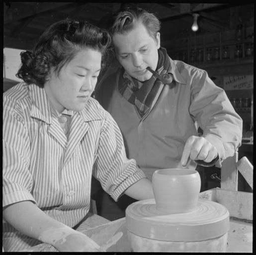 Keywords: Heart Mountain Relocation Center, Heart Mountain, Wyoming. Minnie Negoro, an art student at the Uni . . . - NARA - 539261.jpg Scope and content The full caption for this photograph reads Heart Mountain Relocation Center Heart Mountain Wyoming Minnie Negoro an art student at the University of California in Los Angeles before the evacuation of the persons of Japanese ancestry from west coast defense areas is taking up the art of the potters wheel at the Heart Mountain Relocation Center Ceramics expert and artists Daniel Rhodes is instructing several resident students for future work in the Ceramics Plant General notes 539261 Local identifier 210-G-E706 Department of the Interior War Relocation Authority 02/16/1944 - 06/30/1946 NARA-Author Parker Tom Photographer 4682167 <br /> Still Picture Records Section Special Media Archives Services Division NWCS-S National Archives at College Park 8601 Adelphi Road College Park MD 20740-6001 1943-01-11 Record group Record Group 210 Records of the War Relocation Authority 1941 - 1989 Record group ARC 537 Central Photographic File of the War Relocation Authority compiled 1942 - 1945 Series ARC 536000 File unit File unit ARC Variant control numbers NAIL Control Number NWDNS-210-G-E706 Other versions <gallery> File Heart_Mountain_Relocation_Center _Heart_Mountain _Wyoming _Minnie_Negoro _an_art_student_at_the_Uni_ _ _ _-_NARA_-_539261 tif tif File Heart_Mountain_Relocation_Center _Heart_Mountain _Wyoming _Minnie_Negoro _an_art_student_at_the_Uni_ _ _ _-_NARA_-_539261 jpg jpg </gallery> NARA-cooperation PD-USGov Heart Mountain War Relocation Center |