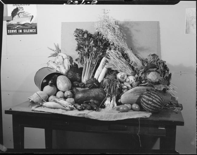 | Keywords: Heart Mountain Relocation Center, Heart Mountain, Wyoming. "Harvest is on at Heart Mountain". This . . . - NARA - 539594.jpg Scope and content The full caption for this photograph reads Heart Mountain Relocation Center Heart Mountain Wyoming Harvest is on at Heart Mountain This picure shows some of the fifty-two varieties of crops grown by the Agricultural Section of the Heart Mountain Center Crops shown in this picture is as follows left to right cantaloupe egg plant potatoes pop corn sweet corn casaba melon hubbard squash bell pepper watermelon zucchini squash pascal celery table queen squash nerima daikon table beets green onions tomatoes banana squashed carrots dry onion wheat rye cabbage and striped watermelon General notes 539594 Local identifier 210-G-G765 Department of the Interior War Relocation Authority 02/16/1944 - 06/30/1946 Still Picture Records Section Special Media Archives Services Division NWCS-S National Archives at College Park 8601 Adelphi Road College Park MD 20740-6001 1944-10-03 Record group Record Group 210 Records of the War Relocation Authority 1941 - 1989 Record group ARC 537 Central Photographic File of the War Relocation Authority compiled 1942 - 1945 Series ARC 536000 File unit File unit ARC Variant control numbers NAIL Control Number NWDNS-210-G-G765 Other versions <gallery> File Heart_Mountain_Relocation_Center _Heart_Mountain _Wyoming _ Harvest_is_on_at_Heart_Mountain _This_ _ _ _-_NARA_-_539594 tif tif File Heart_Mountain_Relocation_Center _Heart_Mountain _Wyoming _ Harvest_is_on_at_Heart_Mountain _This_ _ _ _-_NARA_-_539594 jpg jpg </gallery> NARA-cooperation PD-USGov Heart Mountain War Relocation Center Celery |