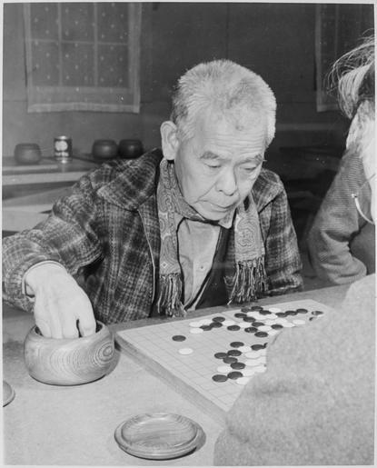Keywords: Heart Mountain Relocation Center, Heart Mountain, Wyoming. On cold winter evenings at the Heart Mou . . . - NARA - 539166.tif Scope and content The full caption for this photograph reads Heart Mountain Relocation Center Heart Mountain Wyoming On cold winter evenings at the Heart Mountain Center old timers pit their wits in the game of Go in one of the recreation halls The game popularly conceived as military strategy is actually a game of mental agility resembling except in numbers of playing characters and simplicity the game of Chess General notes 539166 Local identifier 210-G-E608 Department of the Interior War Relocation Authority 02/16/1944 - 06/30/1946 NARA-Author Parker Tom Photographer 4682167 <br /> Still Picture Records Section Special Media Archives Services Division NWCS-S National Archives at College Park 8601 Adelphi Road College Park MD 20740-6001 1943-01-04 Record group Record Group 210 Records of the War Relocation Authority 1941 - 1989 Record group ARC 537 Central Photographic File of the War Relocation Authority compiled 1942 - 1945 Series ARC 536000 File unit File unit ARC Variant control numbers NAIL Control Number NWDNS-210-G-E608 yes Other versions <gallery> File Heart_Mountain_Relocation_Center _Heart_Mountain _Wyoming _On_cold_winter_evenings_at_the_Heart_Mou_ _ _ _-_NARA_-_539166 tif tif File Heart_Mountain_Relocation_Center _Heart_Mountain _Wyoming _On_cold_winter_evenings_at_the_Heart_Mou_ _ _ _-_NARA_-_539166 jpg jpg </gallery> NARA-cooperation PD-USGov Heart Mountain War Relocation Center NARA TIF images with categorized JPGs