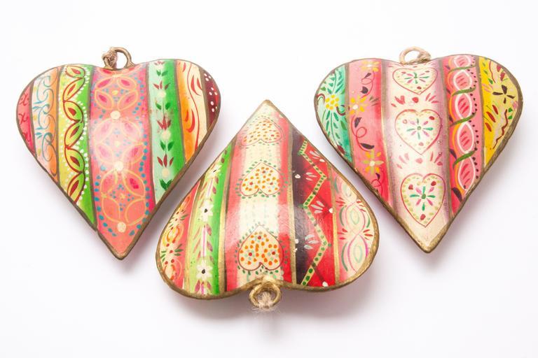 Keywords: heart painted cheerful serene colorful green red pink yellow gold hand labor arts crafts metal symbolic love connectedness loving ranking