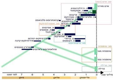 | Keywords: Hebrew Human Evolution 05.svg en As previous וח זמני ש שוש ת האד ע פי מיני הומינידי מאובני פסי כהי המיני מסודרי אנכית ע פי דמיון כ י ביניה אך קשה קבוע במדויק איזה מין התפצ מאיזה מין אחר מיני שמה נמצאו מאובני רבי יותר מסומני בפסי יותר רחבי אנכית העץ הפי וגנטי ירוק משחזר את יחסי הקרבה ותאריכי הפיצו ע פי רצפי הגנו ש אד מודרני שימפנזה מצוי שימפנזה ננסי גורי ה ואד נאנדרט י מיצוי דנ א מעצמות מאובנות own H sapiens Phylogenetic trees of humans Diagrams in Hebrew | ||||