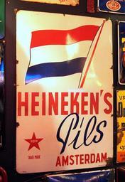 Keywords: Heinekens Pils Amsterdam enamel advertising sign.JPG Photographed at the Bierreclame Museum Haagweg Breda The Netherlands Very old advertisement own 2014-11-16 14 11 57 Alf van Beem CC-zero Trademarked Heineken advertising Flags of the Netherlands Bierreclame Museum Haagweg Enamel beer advertising signs |