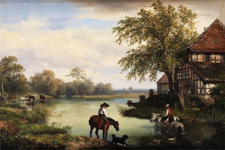 | Keywords: Heinrich Brandes - Reiter am Fluss.jpg Artwork Creator Heinrich Brandes probably 1850 oil canvas cm 30 42 5 object history credit line Brandes ~ lower center signature accession number 1 http //www schmidt-auktionen de/12_katalog_online php nr 28 mode k kuenstler 4584 Schmidt Kunstauktionen Dresden 04 Juni 2011 Los 07<br/>2 http //www auktion-bergmann de/ufItemInfo aspx a_id 97 i_id 293342 s_id 208 Auktionshaus Bergmann Erlangen 23 Okt 2010 Los 428<br/>3 https //www hampel-auctions com/archive-catalogue-detail html a 98 s 414 c 1380 Hampel Auktionen München 26 Sept 2014 Los 1380 PD-old-100 Heinrich Brandes Landscape paintings of Germany 1850 paintings 1850s landscape paintings Images by Schmidt Kunstauktionen Images from Auktionshaus Bergmann Images from Hampel Auctions |