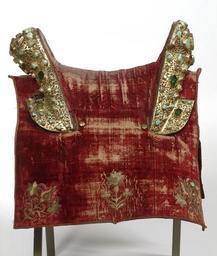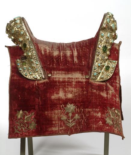 | Keywords: Helbild, Bethlen Gabor - Livrustkammaren - 48214.tif  Sadel av läder sitslängd 270 mm klädd med röd sammet rektangulära kappor fodrade och kantade med brunt skinn I hörnen och på mitten av kapporna samt på bakbommens insida broderad dekor i plattsöm med guldtråd i form av blommor på stjälk med blad <br/><br/>Bommarna smala frambommen h 145 mm bakbommen h 125 mm på utsidan klädda med förgyllt genombrutet silverbleck med yttäckande graverat rankmönster och infattade stenar turkoser av oregelbunden form På båda bommarna dessutom vardera fem stora planslipade gröna stenar 2 sexsidiga och 2 åttsidiga 1 stor sjusidig sten i mitten I silverplåten inslagen tughra Baktill krampa för ryggstycke <br/><br/>Bom överklädd med läder rektangulära hål för stigläder fyra stroppar av vitt läder för sadelgjord original caption helbild - LRK 9043 Bethlen Gabor<br/> Nyckelord Turkisk Bomsadel Sammet Röd Broderad Föremålsbild Gåva Bethlen Gabor Stormaktstiden early other date century 17 turquoise - silver - velvet Färg röd material sammet - leather - gold thread size mm 510 LRK Gabor Bethlen av Iktár furste av Siebenbürgen Kristina av Sverige Gustav II Adolf av Sverige The Arts of Islam 1976 Livrustkammarens basutställning 1978 Gustav II Adolf 350 år efter Lützen 1982-1984 Islamiskt i de kungliga samlingarna 1984 Orientalisk textilkonst Basutställning tughra Turkiet tughra Turkiet place of origin original filename lm_dig1280 45578 inventory number LRK 9043 48214 CC-BY-SA Göran Schmidt <gallery caption Different images of same object > File Helbild ovansida Bethlen Gabor - Livrustkammaren - 56776 tif File Detalj Bethlen Gabor - Livrustkammaren - 56775 tif File Detalj Bethlen Gabor - Livrustkammaren - 39656 tif File Detalj Bethlen Gabor - Livrustkammaren - 31096 tif File Helbild undersida Bethlen Gabor - Livrustkammaren - 48215 tif File Detalj Bethlen Gabor - Livrustkammaren - 5411 tif File Bomsadel Bethlen Gabor - Livrustkammaren - 52387 tif File Detalj Bethlen Gabor - Livrustkammaren - 31097 tif File Detalj Bethlen Gabor - Livrustkammaren - 22535 tif File Detalj Bethlen Gabor - Livrustkammaren - 82457 tif File Detalj Bethlen Gabor - Livrustkammaren - 39657 tif File Detalj Bethlen Gabor - Livrustkammaren - 13972 tif File Detalj Bethlen Gabor - Livrustkammaren - 65336 tif File Helbild Bethlen Gabor - Livrustkammaren - 73898 tif </gallery> Göran Schmidt Red Gábor Bethlen Sweden 1611-1718 Saddles Media contributed by LSH unmatched keyword Color images from Livrustkammaren Horse tack images from Livrustkammaren Media contributed by LSH 2013-10 |