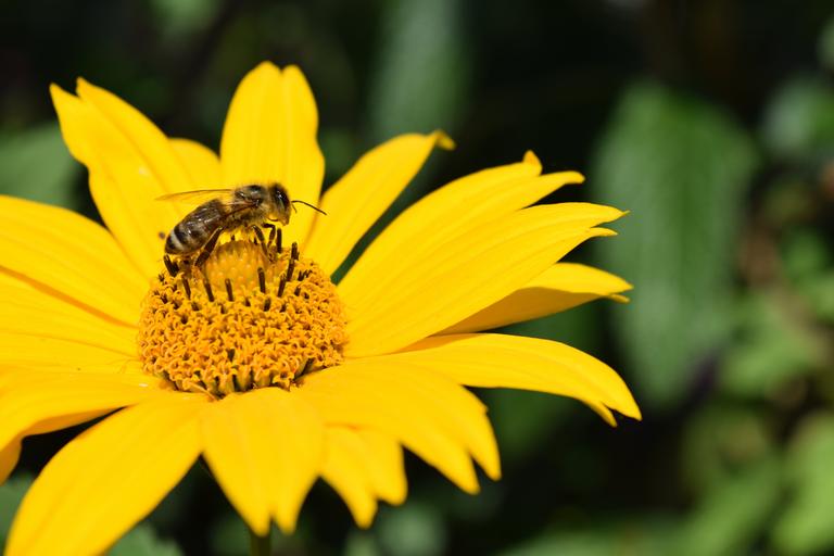 Keywords: helianthus decapetalus perennial sunflower blossom bloom yellow yellow flowers bee close food collect hard working summer