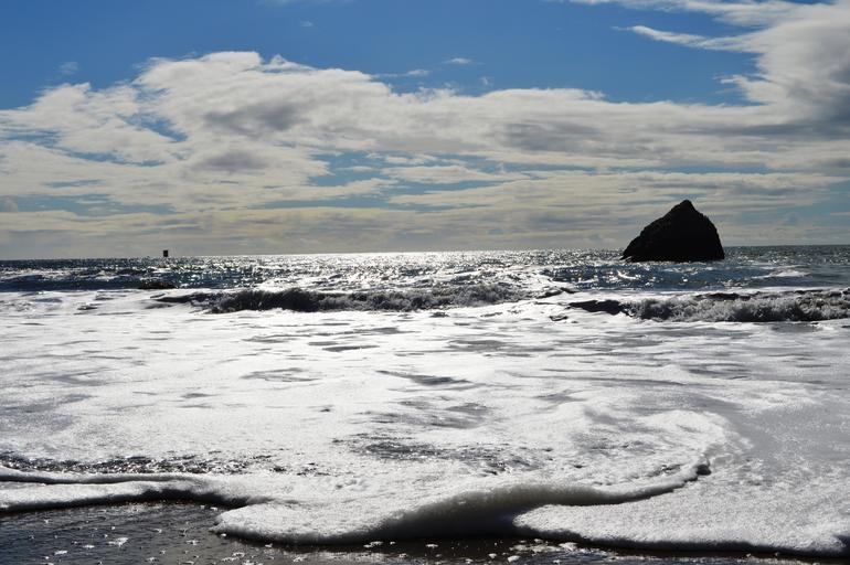 Keywords: Helmet Rock, Marshall Beach 03.JPG en A spring afternoon on the shore across from Helmet Rock 2014-04-25 06 55 55 own Blake Everett other versions cc-zero Beaches of California Rocks in California Uploaded with UploadWizard