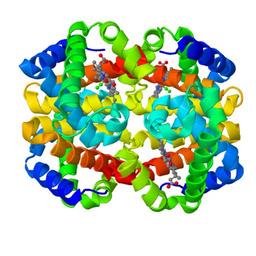 Keywords: Hemoglobin F.png Fetal hemoglobin HbF formed by two alpha subunits top and two gamma subunits bottom The 4 heme groups are also displayed All chains ribbons are rainbow-colored from blue to red N- to C-termini Own - A rendering prepared by me using Jmol from 4MQJ at PDB doi 10 2210/pdb4mqj/pdb 2016-02-10 AngelHerraez Original upload log page en wikipedia Hemoglobin_F png 2004-04-12 15 39 Diberri 612×522× 25345 bytes Fetal hemoglobin transparent background My snapshot of rendered version from PDB file http //www snv jussieu fr/vie/telecharge/pdb/HbF-1FDH pdb 2004-04-12 15 01 Diberri 612×522× 36662 bytes Fetal hemoglobin white background My snapshot of rendered version from PDB file http //www snv jussieu fr/vie/telecharge/pdb/HbF-1FDH pdb Blood cells Iron compounds Metalloproteins |