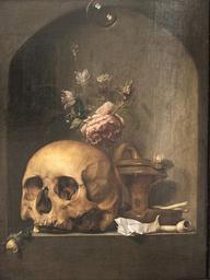 Keywords: Hendrick Andriessen - Vanitas.jpg Artwork Creator Hendrick Andriessen Oil on canvas Institution Museum voor Schone Kunsten Gent object history Legaat Fernand Scribe 1913 credit line accession number 1914-DE own photo by Szilas inthe Museum voor Schone Kunsten Gent PD-old-100 Hendrick_Andriessen V Flemish paintings in the Museum of Fine Arts Ghent Niches in art Paintings of Vanitas Homo Bulla Oil lamps in art 17th-century still life paintings 17th-century oil on canvas paintings in Belgium |