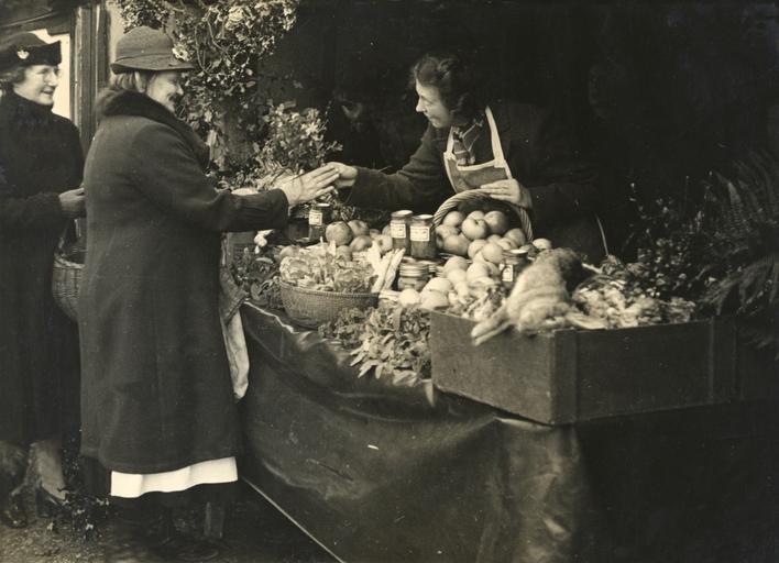 Keywords: the women's library thewomenslibrary hires 5FWI/B/2/2/46/016 Photograph, printed paper, monochrome, customer buying produce, range of produce on display including wild rabbit, vegetables and fruit 5FWI/B/2/2/46/016 Photograph, printed paper, monochrome, customer buying produce, range of produce on display including wild rabbit, vegetables and fruit |